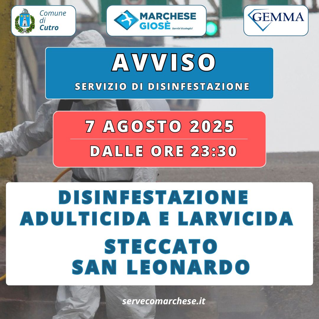 DISINFESTAZIONE ADULTICIDA E LARVICIDA STECCATO-SAN LEONARDO