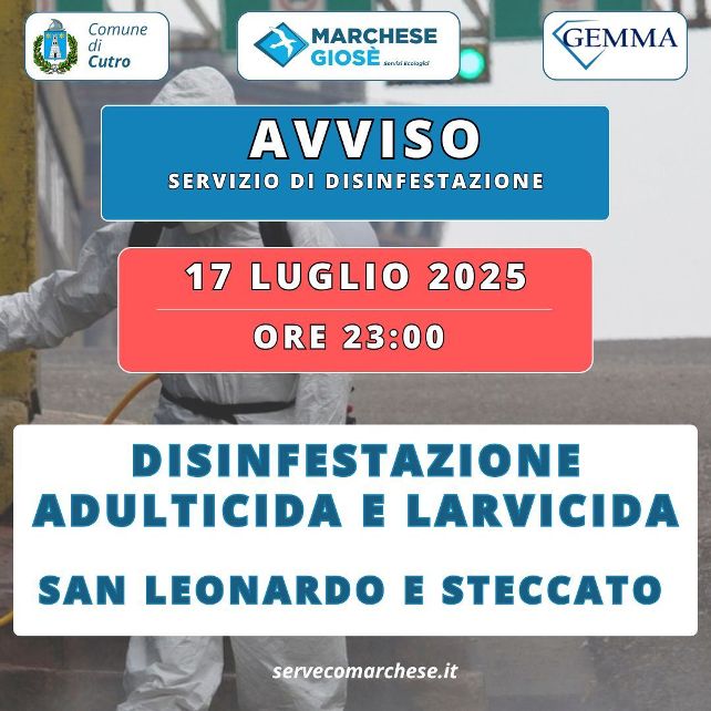 DISINFESTAZIONE ADULTICIDA E LARVICIDA STECCATO-SAN LEONARDO